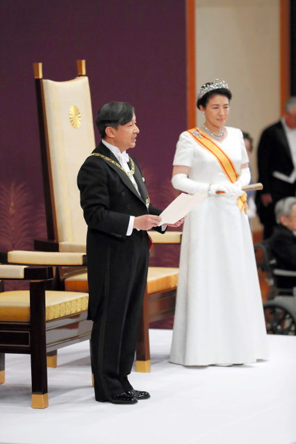 人民网东京5月1日电 据《朝日新闻》网站报道,5月1日德仁天皇即位,拉开了日本令和时代的序幕。上午,德仁天皇出席在东京皇居举行的“剑玺等继承之仪”,承接象征皇位的三神器。他在即位后的首次讲话中提到:“我宣誓遵照宪法,履行作为日本国和日本国民象征的责任和义务,衷心希望日本国民能够更加幸福、国家进一步发展、世界能够更加和平。” (编译:赵雯博 审稿:陆晓鸥)